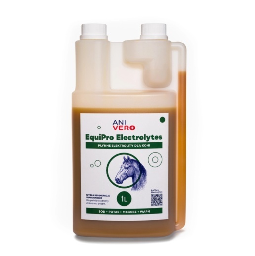 ANIVERO EquiPro ELECTROLYTES to nowoczesny, płynny preparat elektrolitowy dla koni, stworzony z myślą o potrzebach zwierząt narażonych na utratę elektrolitów podczas intensywnego wysiłku, upałów, stresu, transportu oraz zawodów sportowych. Preparat został opracowany przez lekarzy weterynarii, aby wspierać prawidłowe funkcjonowanie organizmu konia, przywracać równowagę wodno-elektrolitową i skracać czas regeneracji po wysiłku.