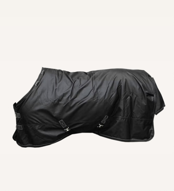 Zewnętrzy materiał to niezwykle wytrzymały, trwały i odporny na zabrudzenia poliester 1680D o wyglądzie płótna.Dzięki wodoodpornej powłoce PU (ISO 10 000 mm) koń ma gwarancję pozostania suchym. Wypełnienie 160 g to włókno PES, które jest ciepłe i oddychające dzięki wielowarstwowej strukturze, która umożliwia cyrkulację powietrza. Wnętrze derki jest wyłożone autorską sztuczną skórą królika. Zapobiega to otarciom i działa jako dodatkowa warstwa izolacyjna obok wypełnienia z włókna.