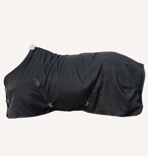 - Świetnie skrojona klasyczna stajenna derka z delikatnym futrzanym obszyciem na kłębie.