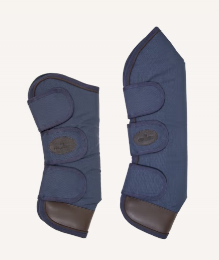Zewnętrzna strona ochraniaczy wykonana jest z wytrzymałego poliestru ripstop 600D. Ripstop to specjalna technika tkania, która zwiększa odporność materiału na rozdarcia i przetarcia. Obszar pęciny wzmocniony jest sztuczną skórą Kentucky,dzięki czemu ta wrażliwa strefa jest dodatkowo chroniona. Ochraniacze są wyściełane sztuczną skórą królika - oprócz większego komfortu, zapobiega ona otarciom i reguluje temperaturę. Wewnątrz ochraniaczy dodano amortyzującą piankę, aby zapewnić maksymalną ochronę. Wszystkie te materiały są lekkie, oddychające, trwałe i zapewniają Twojemu koniowi komfort podczas podróży.