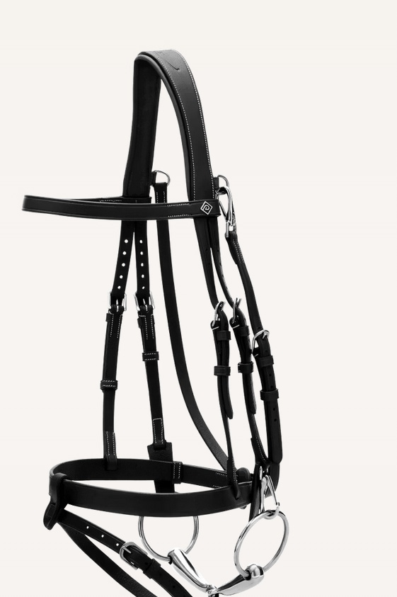 Zaprojektowane dla jeźdźców ceniących wydajność i wszechstronność, to ogłowie jest wykonane ze skóry bawolej, co zapewnia mu wytrzymałość i miękkość, które sprostają wyzwaniom codziennej pracy. Dzięki karabińczykom na paskach policzkowych i podgardlu, wymiana wędzidła lub zdejmowanie ogłowia jest szybkie i bezproblemowe — idealne podczas pracy z wieloma końmi lub zmiany dyscyplin w ciągu dnia.