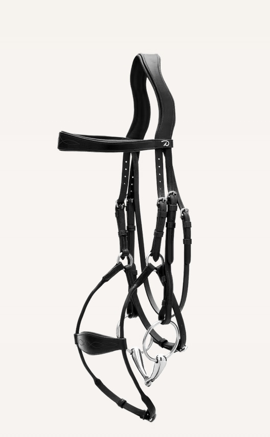 Ogłowie Dy'on z hybrydowym nachrapnikiem z kolekcji New English. Kolekcja New English charakteryzuje się przeszyciami w kolorze skóry i srebrnymi okuciami. Posiada gładki prosty naczółek. Dostępne w kolorze czarnym i brązowym.