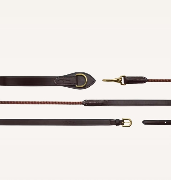 • Skórzana wodza pomocnicza Dy'on z kolekcji D Collection. Zakończona sznurkiem i dwoma karabińczykami. Kolekcja D Collection charakteryzuje się kremowymi przeszyciami i mosiężnymi okuciami.